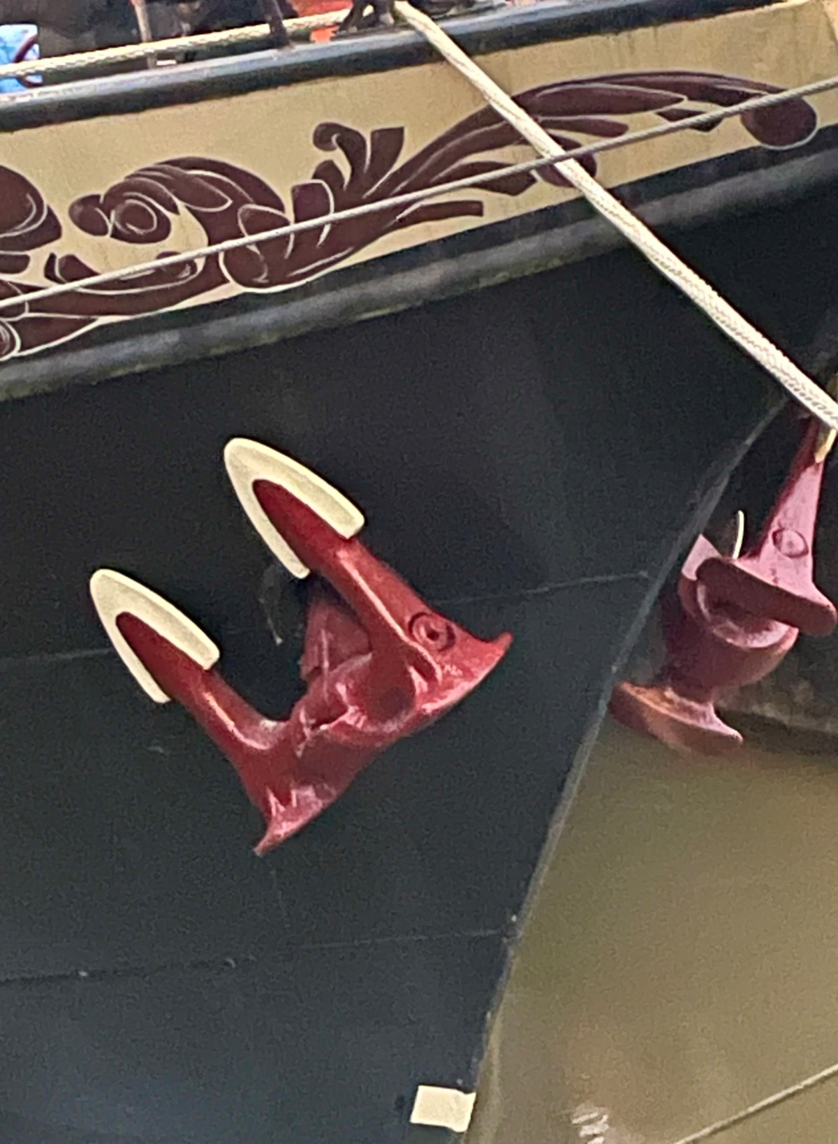 De sieraden van glad gepolijst hout hebben een bont gekleurde versleten verfhuid. Afgeleid van strandhout waarvan de verflagen zijn afgeslepen door het eindeloos schuren van zand en water.